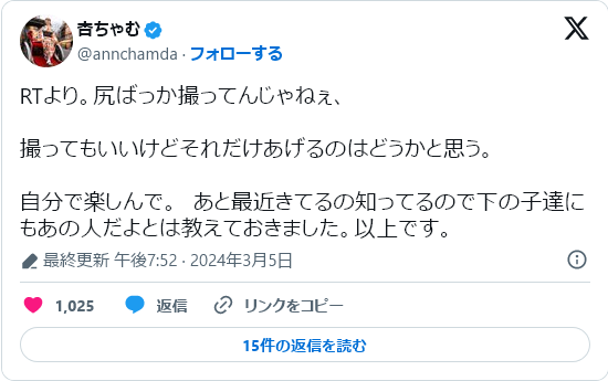 人気女子レスラー「尻ばっか撮ってんじゃねぇ」 性的な部分を強調する画像の投稿に激怒!