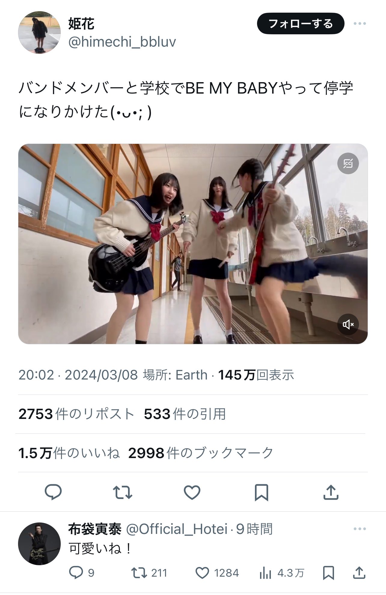 バンドメンバーと学校でBE MY BABYやって停学になりかけた(•ᴗ•; ) pic.twitter.com/d67fUMmigK