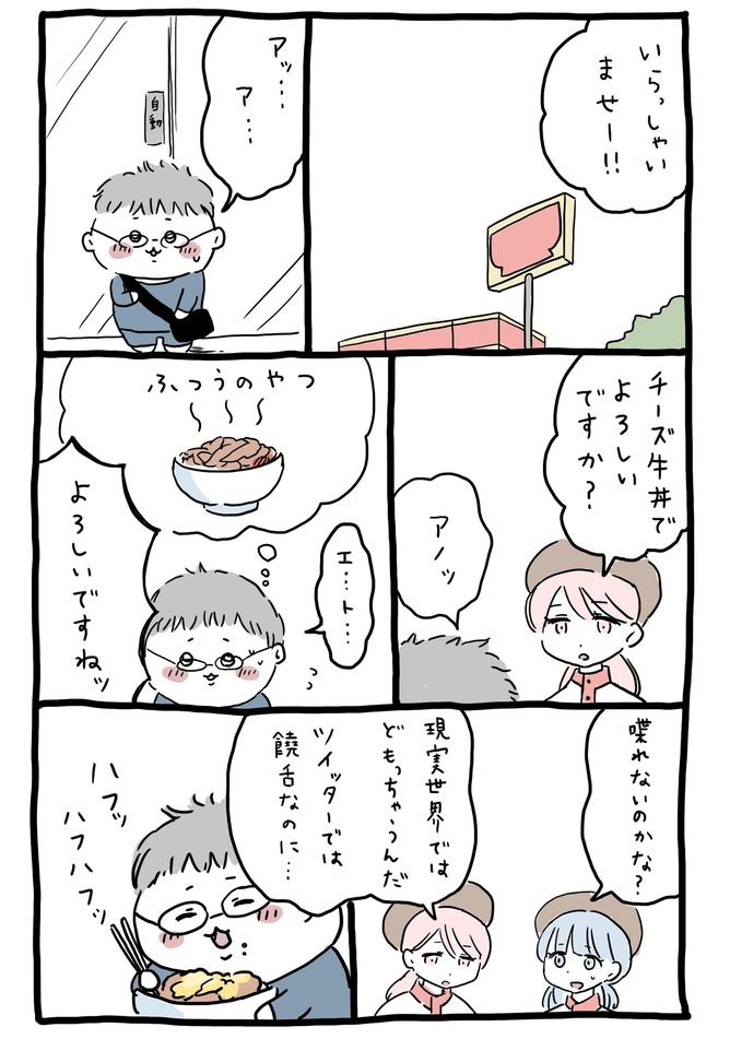 現実世界ではどもっちゃうんだ