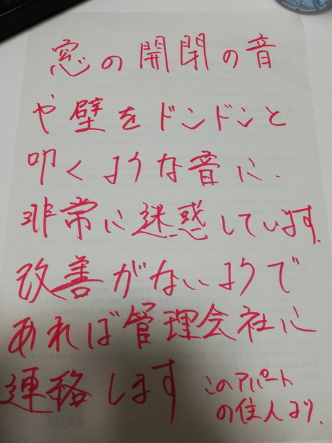 【画像】下の部屋に住んでる奴がうるさいからこの紙を今からドアに貼るわ