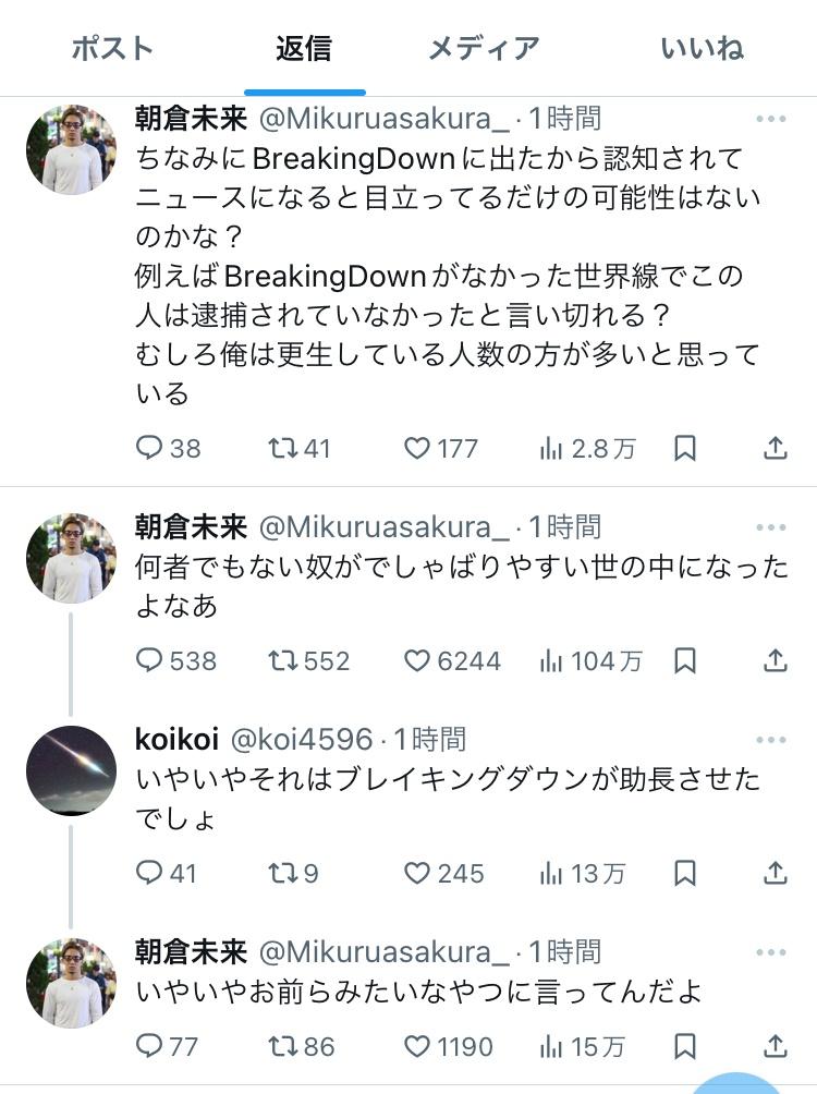 むしろ俺は更生している人数の方が多いと思っている— 朝倉未来 (@Mikuruasakura_) March 18, 2024