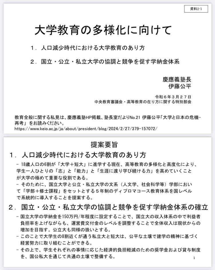 大学教育の多様化に向けて 慶応義塾長 伊藤公平