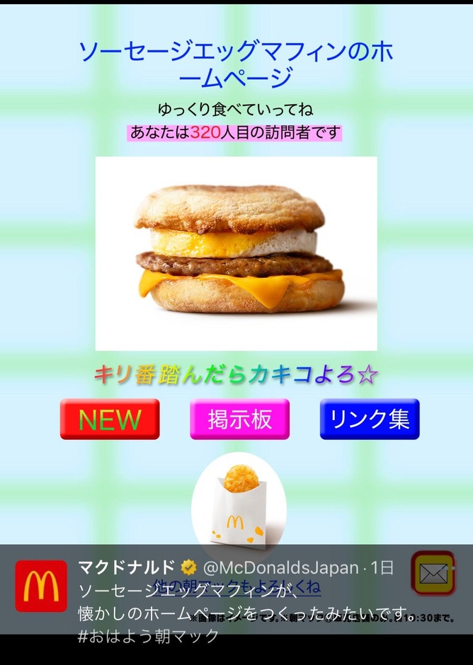 懐かしのホームページをつくったみたいです。#おはよう朝マック pic.twitter.com/YdCvA3ndzI— マクドナルド (@McDonaldsJapan) April 21, 2024