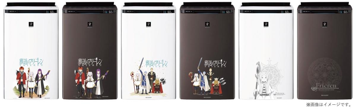 今回のコラボレーションでは、描き下ろしキャラクターイラストを組み合わせたオリジナルデザインを計6種類作成。それぞれ空気清浄機の本体前面にプリントしたオリジナルモデルとして販売します。また、同梱の「COCORO VOICE」専用引き換えチケットで空気清浄機の発話音声を『葬送のフリーレン』に登場するキャラクターの音声にカスタマイズすることが可能です。