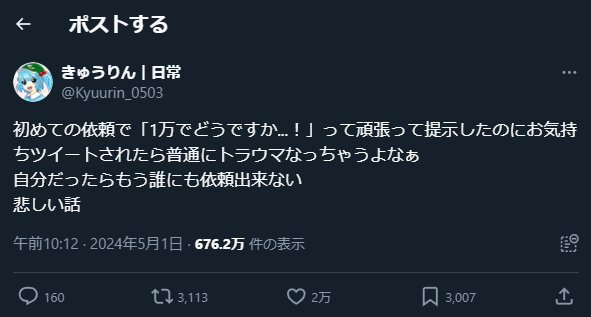 【悲報】映像クリエイター「1万円でMV依頼が来た。自分の価値がそれだけなのが悲しい」←なぜか炎上してしまう