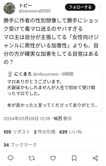 続き→https://t.co/ZEPxnc127e#マシュマロを投げ合おう— にくまろ (@nikuumaro) May 9, 2024