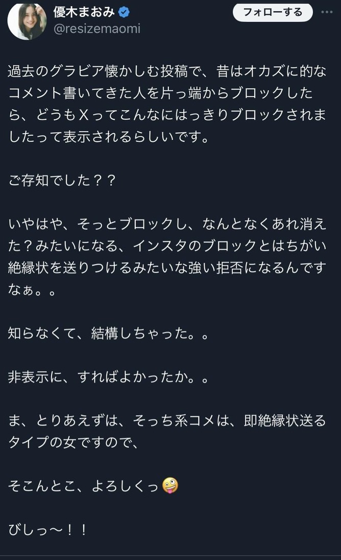 昔から自分のこと知ってくれてる古参ファンをブロックとかひどいな