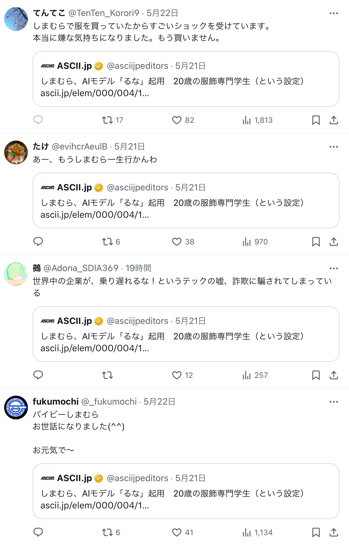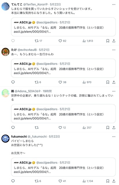反AIはしまむらを愛用してた人が多かった!?