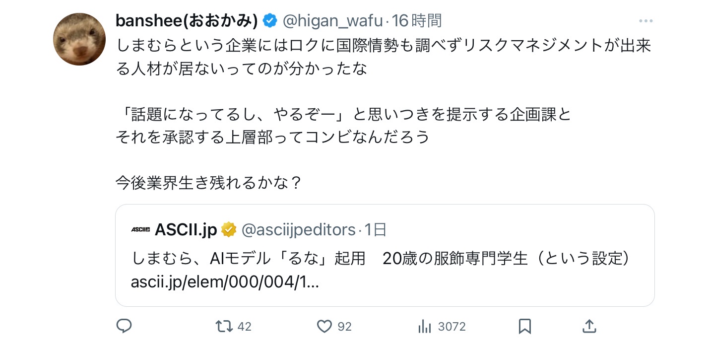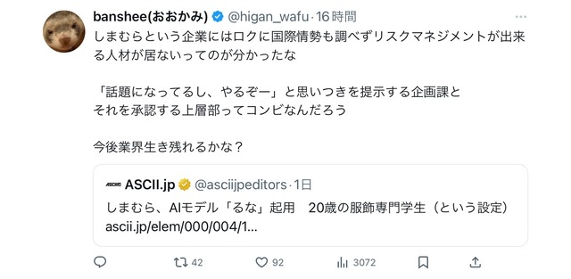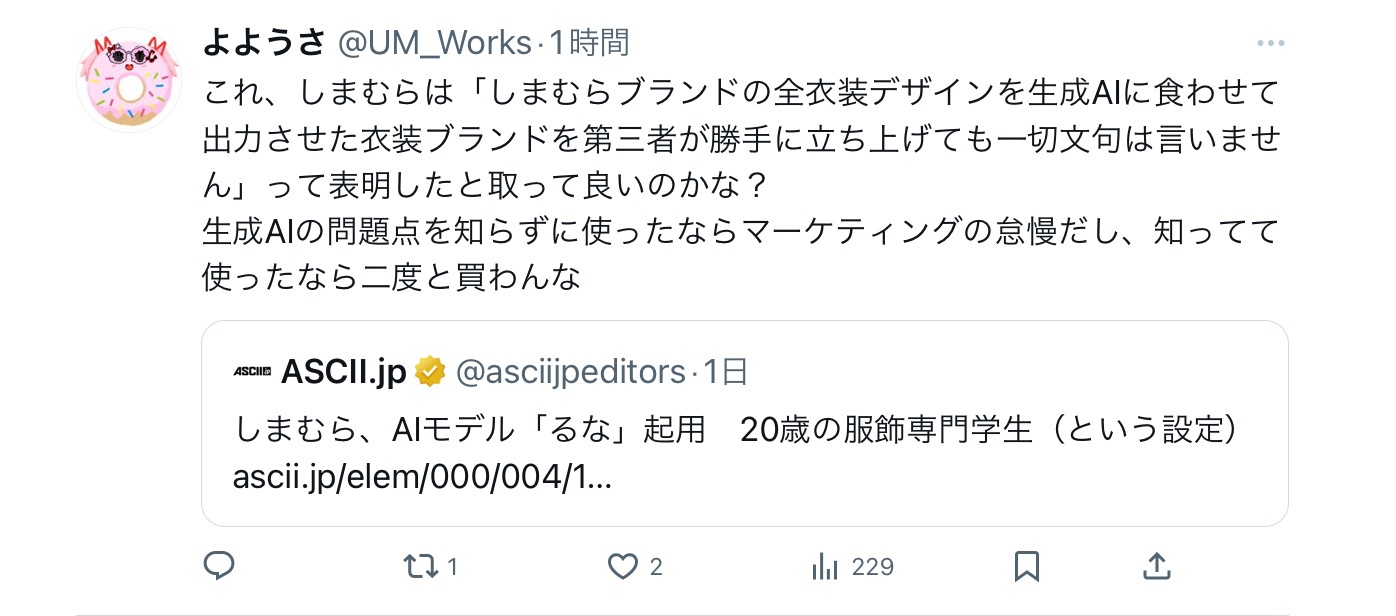 ASCII.jp:しまむら、AIモデル「るな」起用 20歳の服飾専門学生(という設定)