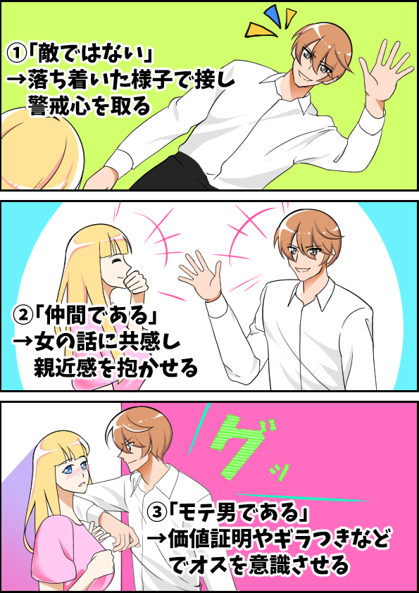 「ナンパで女と距離を縮める3つのステップ」がこれ。
