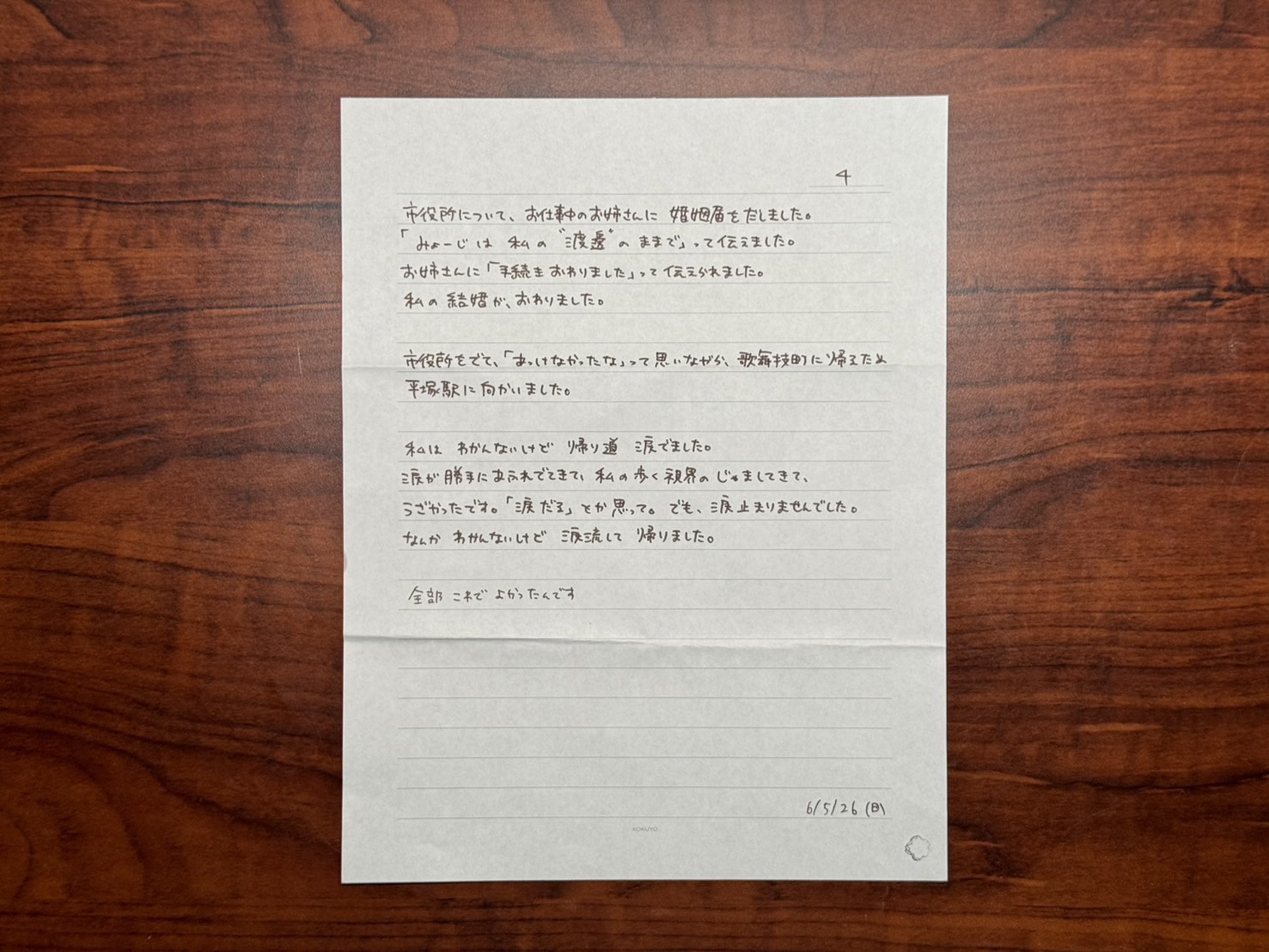 私とベトナム人の彼の名前が書かれた、婚姻届を提出しにいくためです。