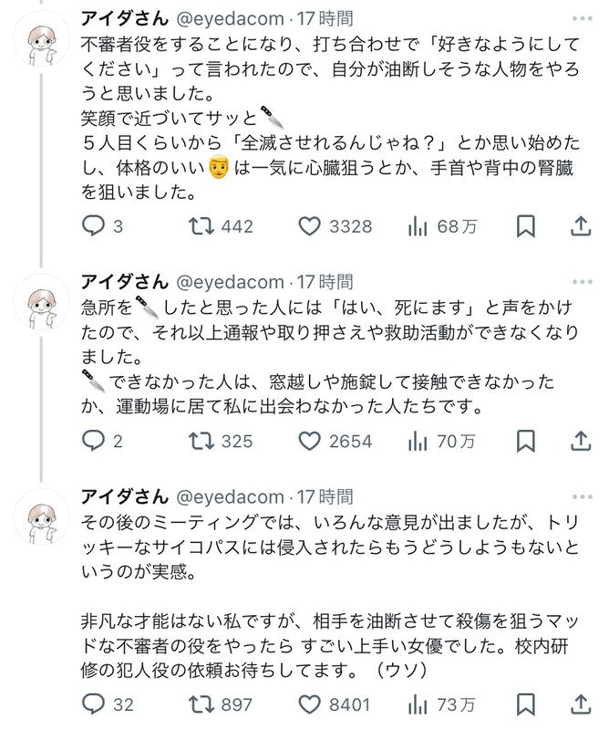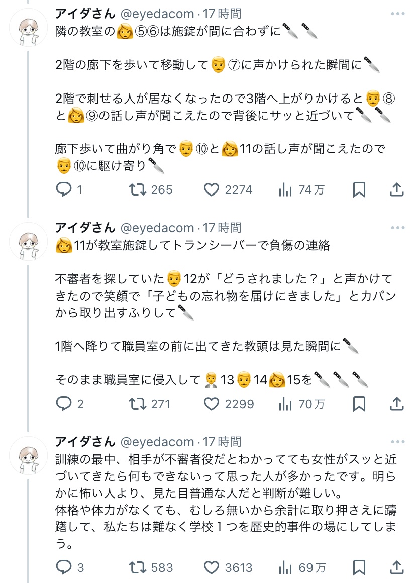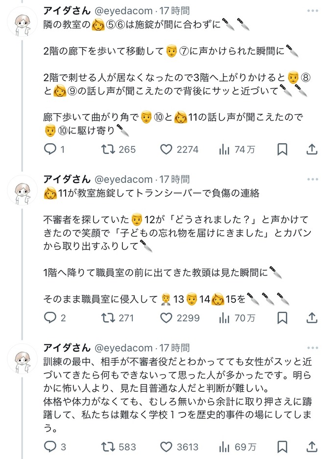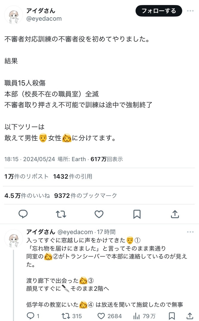 不審者取り押さえ不可能で訓練は途中で強制終了以下ツリーは