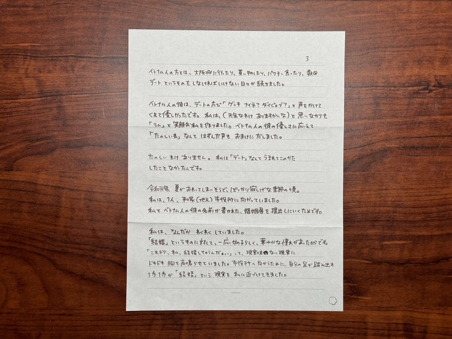 私とベトナム人の彼の名前が書かれた、婚姻届を提出しにいくためです。