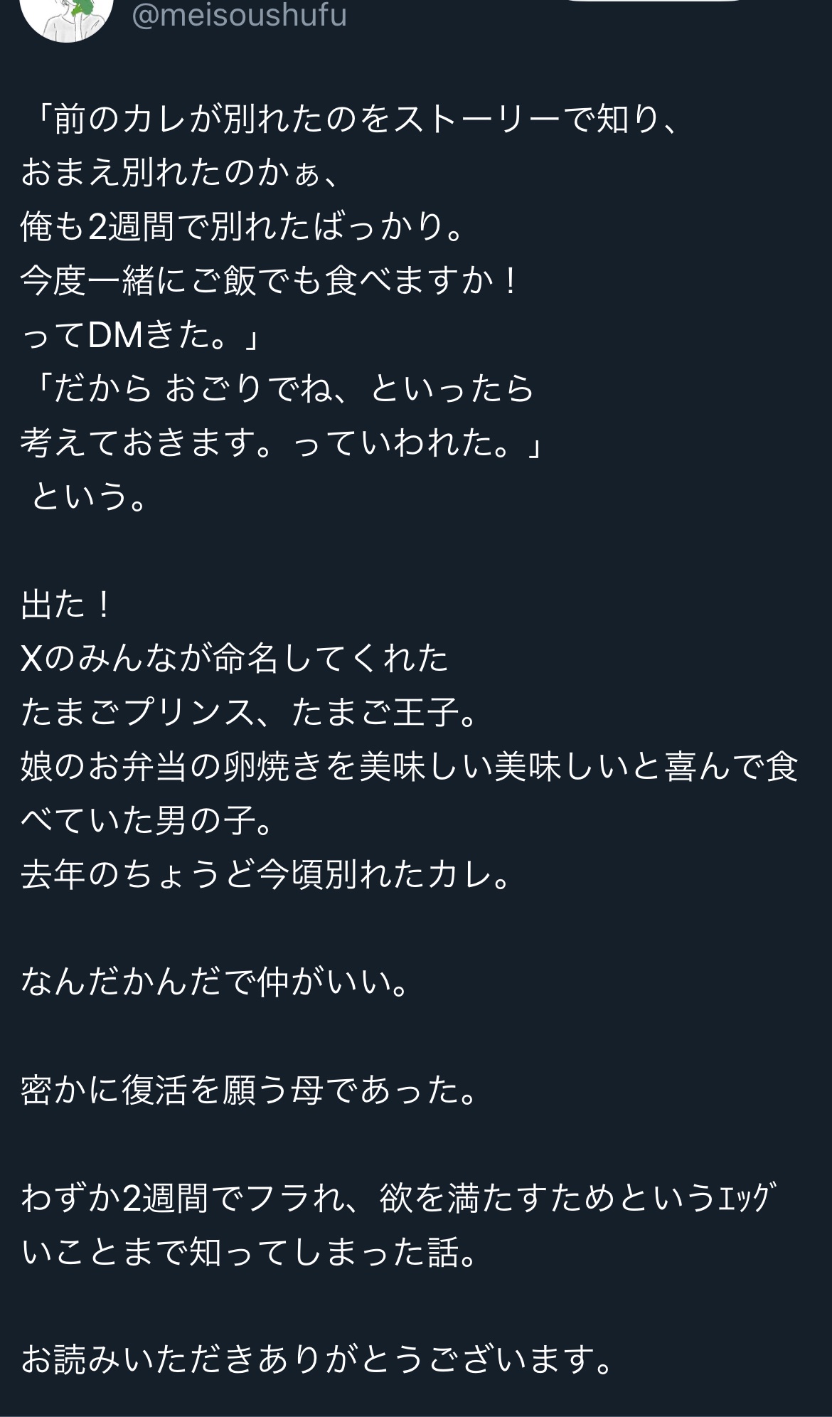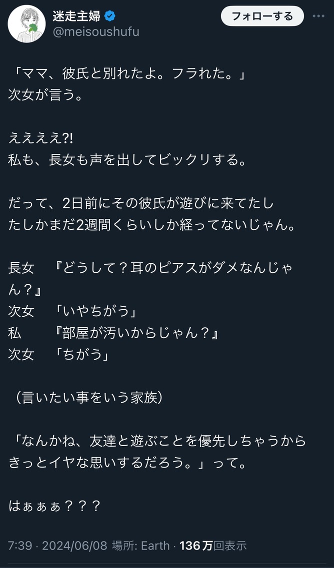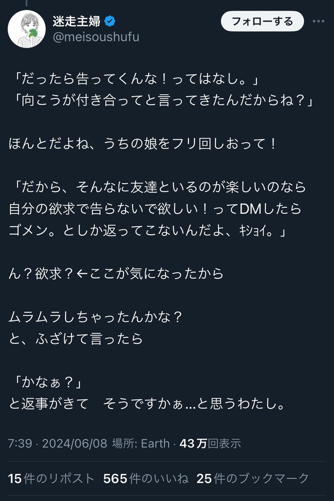 これ娘はムラムラ解消の為に告白されて2週間で使い倒されてもうええわと捨てられたと認識してるってことやろ?