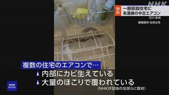 能登半島地震で被害を受けた石川県珠洲市で県が仮設住宅を整備した際、一部の住宅で、中古品のエアコンの内部をクリーニングせずにそのまま取り付けていたことがNHKの取材で分かりました。