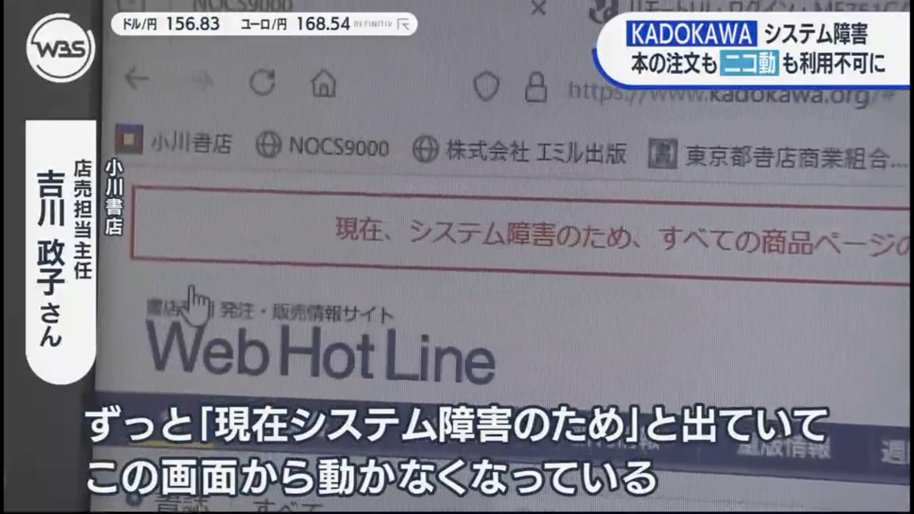 大変そうだな…KADOKAWAのシステム障害 書店に本届かず 電源切断して対応https://t.co/DQja6lzrvQ 出版大手KADOKAWAグループがサイバー攻撃を受け、大規模なシステム障害が起きている。複数のサイトや書籍の受注システムが停止、「ニコニコ動画」など利用できないサービスも出た。 — 朝日新聞デジタル (@asahicom) 2024年6月25日