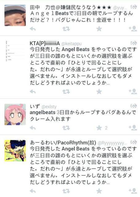 Angel Beats -1st beat-楽しんでもらえてるようね。でも、一部から3日目からループして進まないという報告が来ているわ。「正規のディスク」でインストールして、ゲーム起動時にディスク認証をしていれば起こらないわ。 pic.twitter.com/HPcRg6Gzj8