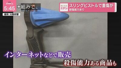 4月に大阪市で「スリングピストル」を使用した傷害事件が起きた。捜査関係者が「目に当たれば(球が)脳まで届く威力」と話すほど危険性が高いが、入手は容易だ。大阪府警幹部や専門家は、法規制の必要性を指摘する。