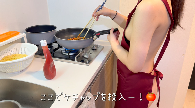 【画像】すずちゃん、YouTubeで横乳見せながらナポリタン作り😄