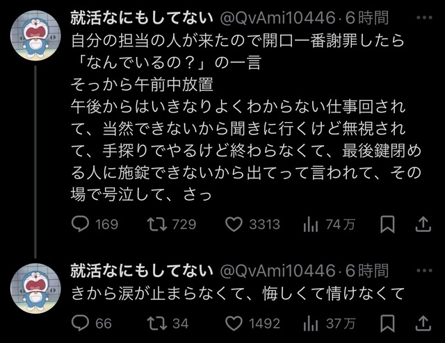 【画像】新入社員さん、出社1日目から寝坊して会社に電話した結果wwwww 2024/7/4 キニ速 1:以下、5ちゃんねるからVIPがお送りします: 2024/07/04(木) 09:08:23.820ID:EeDIHiBu0 11:以下、5ちゃんねるからVIPがお送りします: 2024/07/04(木) 09:14:53.576ID:Z8oPyCNv0 こんな会社居なくて正解だろ 3:以下、5ちゃんねるからVIPがお送りします: 2024/07/04(木) 09:11:17.531ID:uFPfO9b60 なにこのキッショい会社 許してやれや 続きを読む Source: キニ速