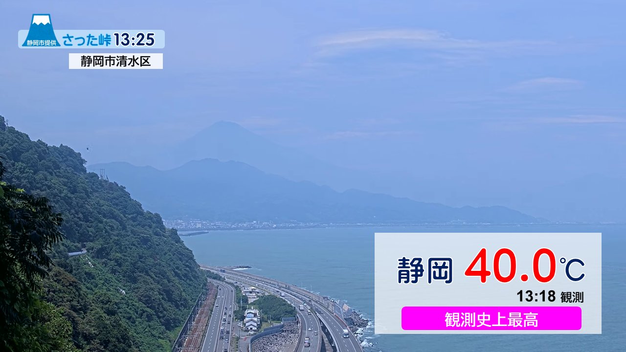 今日7月7日(日)の13時18分、静岡地方気象台で最高気温40.0℃を観測しました(静岡での観測史上最高)。