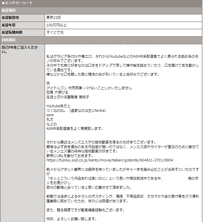 【画像】ワイ、アダルト業界の求人に渾身の自己PRを書くも選考段階で落とされる