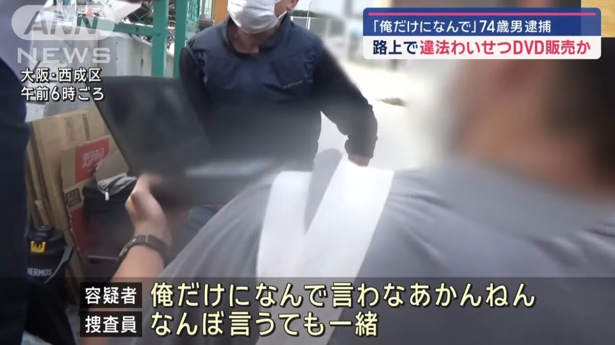 「なんで俺だけやねん!」早朝の大阪・西成 「ヤミ露店」で無修正DVD販売疑いの男逮捕 https://t.co/ZRZVTqn1Ev