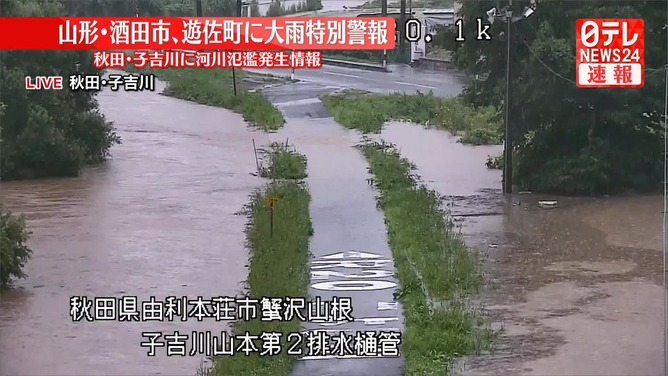 新庄河川事務所と山形地方気象台は26日午前4時20分、最上川中流の戸沢村蔵岡地区付近の左岸で氾濫が発生しているとして、「氾濫発生情報」を発表しました。