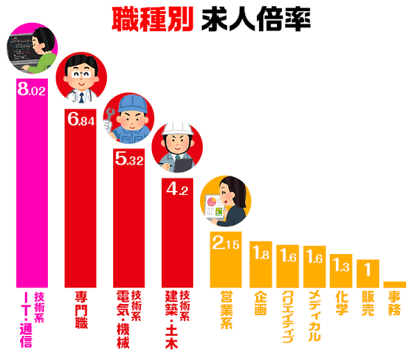 SIerは新卒に最も人気のある業種です。どこも人数が余っており高倍率です。