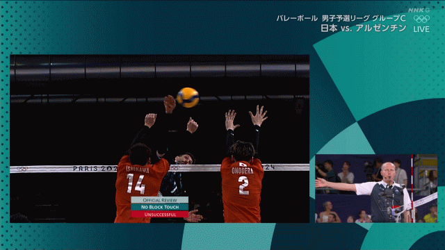 アルゼンチンのスパイクがアウトとなり日本が同点に追いついた。