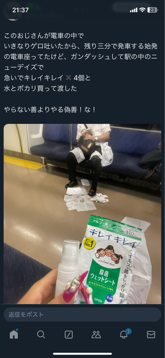 水とポカリ買って渡したやらない善よりやる偽善!な! pic.twitter.com/jATUhmNfMs