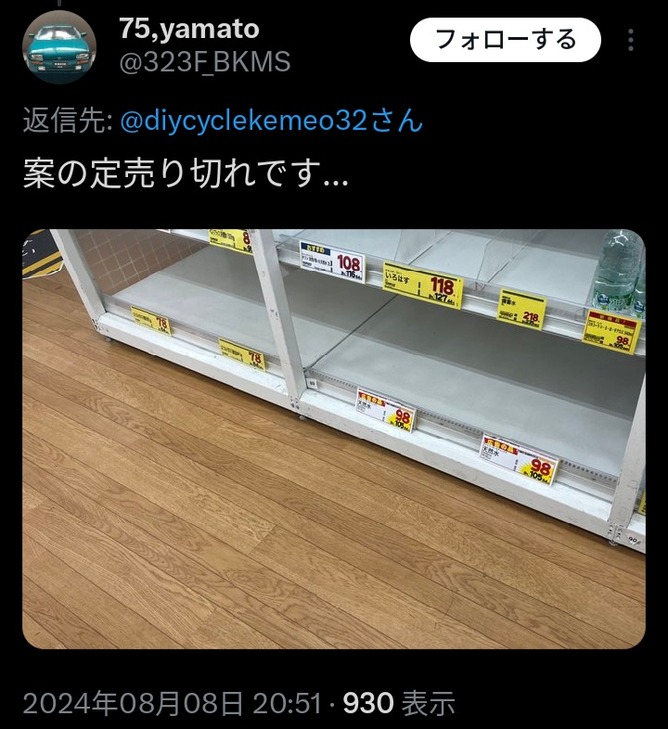 1:それでも動く名無し 警備員[Lv.21] : 2024/08/09(金) 00:33:23.67 ID: ID:sL27D/Iz0