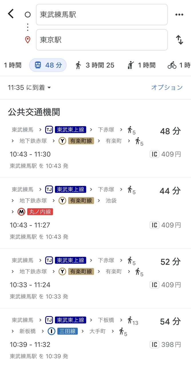 なんで東武練馬→東武東上線→池袋→丸の内線→東京駅が出てこないの?