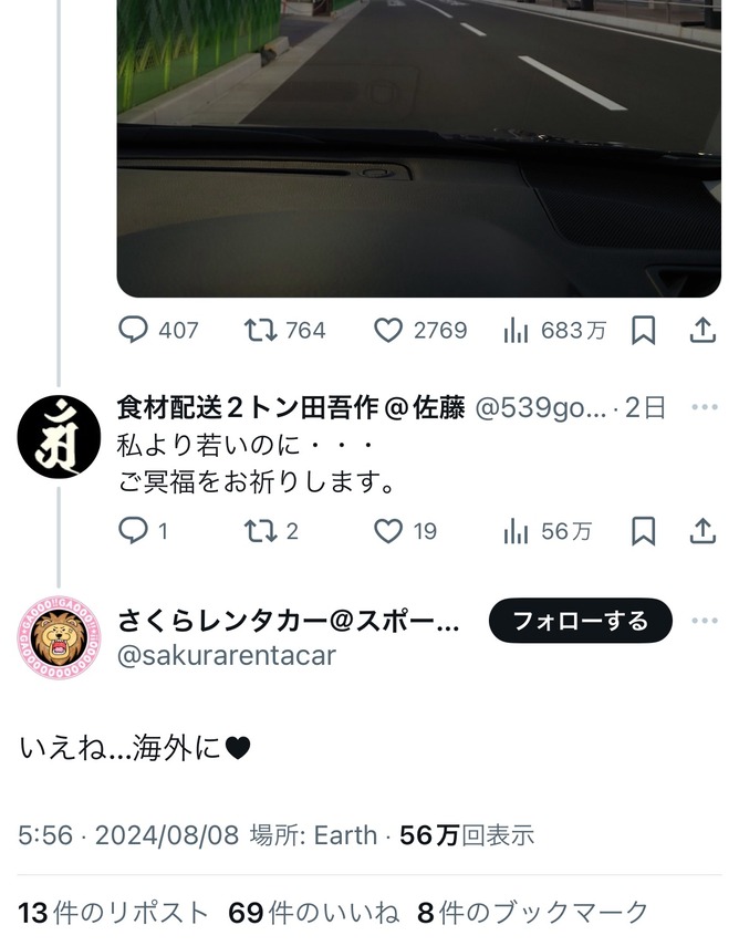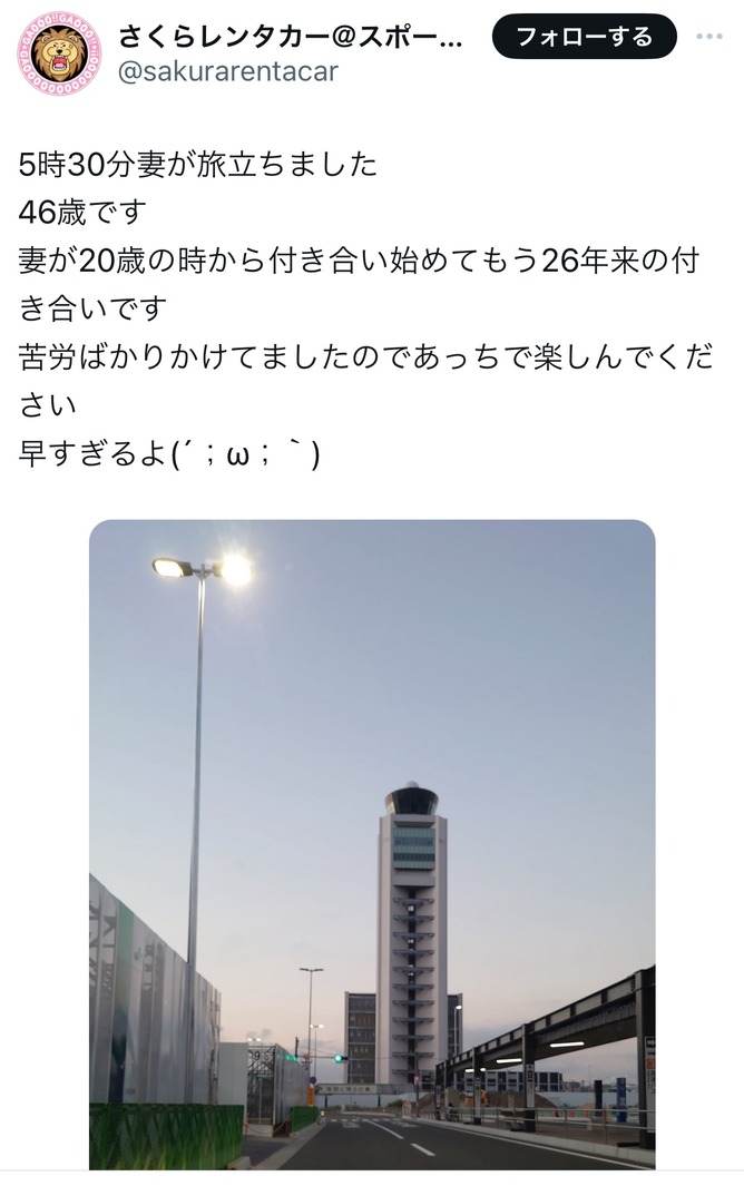 早すぎるよ(´;ω;`) pic.twitter.com/q1t32CFI4U— さくらレンタカー@スポーツカーから軽トラックまでレンタルしてます (@sakurarentacar) August 7, 2024