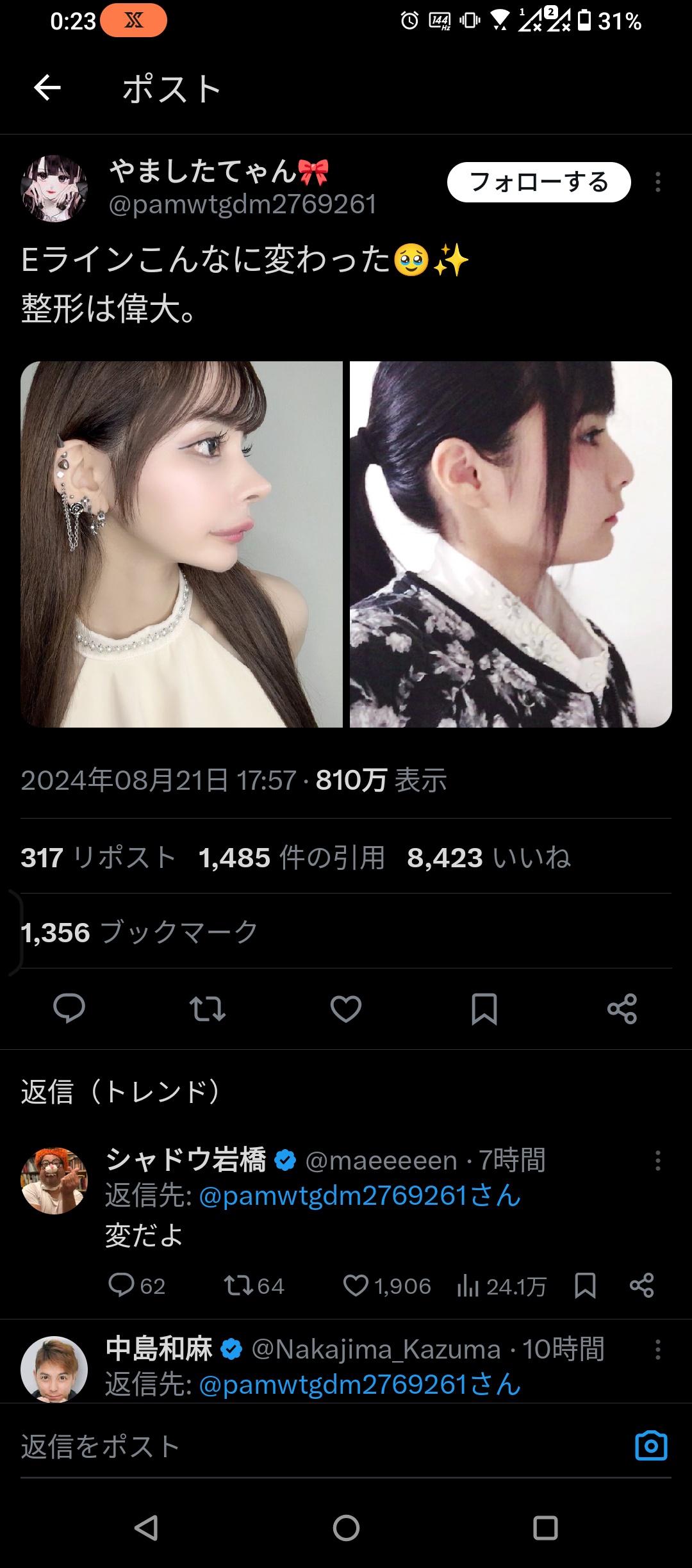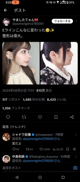 【画像】女さん「昔とEラインの違い見て!整形は偉大。」パシャ