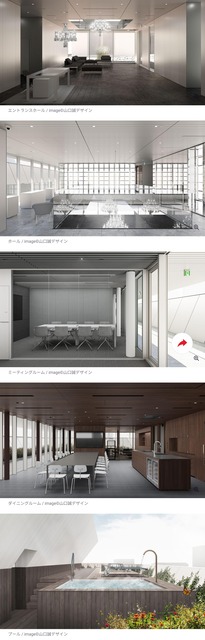 山口誠デザインによる、東京・台東区のオフィスビル「MONOSPINAL」。ゲーム制作会社の本社。従業員の“集中力”と“リラックス”のバランス確保を目指し、環境要素も向上をさせる“斜壁”を持つ建築を考案。小スケールの素材を集積をさせる仕上げで“あらたな風景”を作る | architecturephoto.net