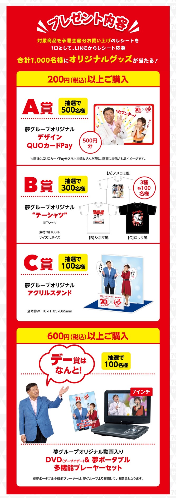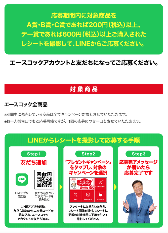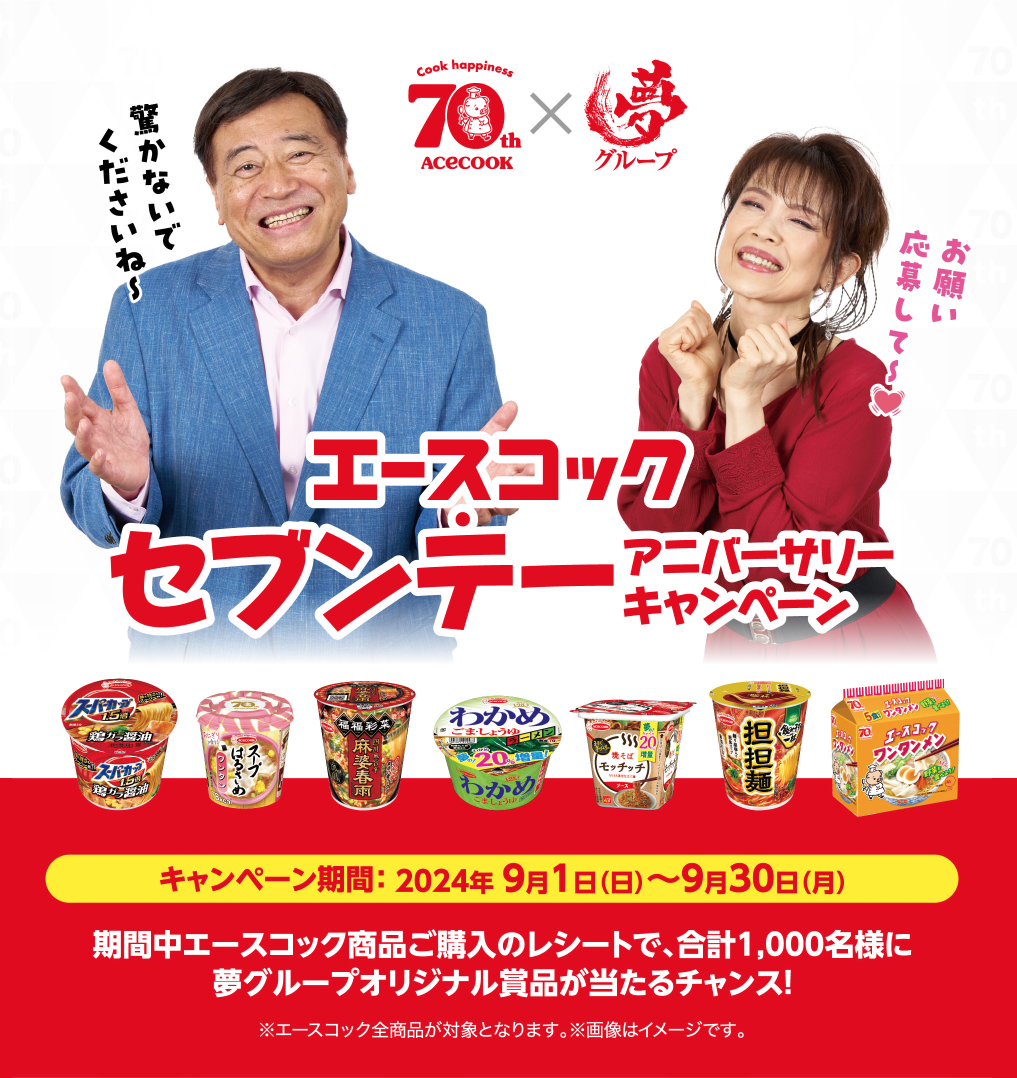 \期間中エースコック商品ご購入のレシートで、合計1,000名様に夢グループオリジナル賞品が当たるチャンス🎁
