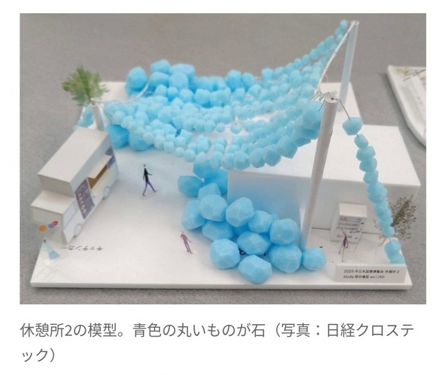 万博休憩所の石の屋根、ドローン出してくれてるひとの写真見る限り、風で隣のワイヤーとぶつかる可能性は思ったより低そうだった