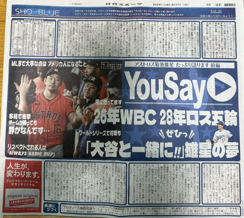 約2時間の会話で、大谷選手に関する話は1分ほどでした。… https://t.co/jcROHCSi99— 菊池雄星 (@Yuseikikuchi16) September 17, 2024