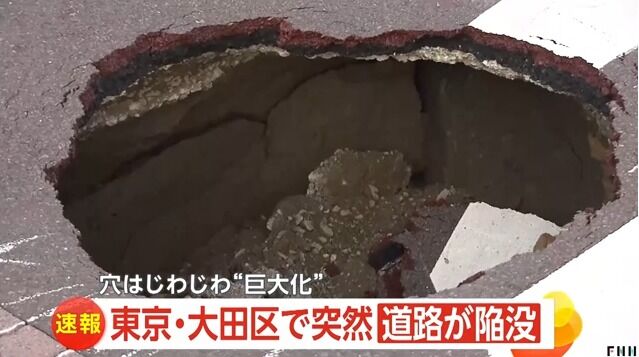 東京・大田区の道路が突然陥没 穴は徐々に拡大し3メートルに