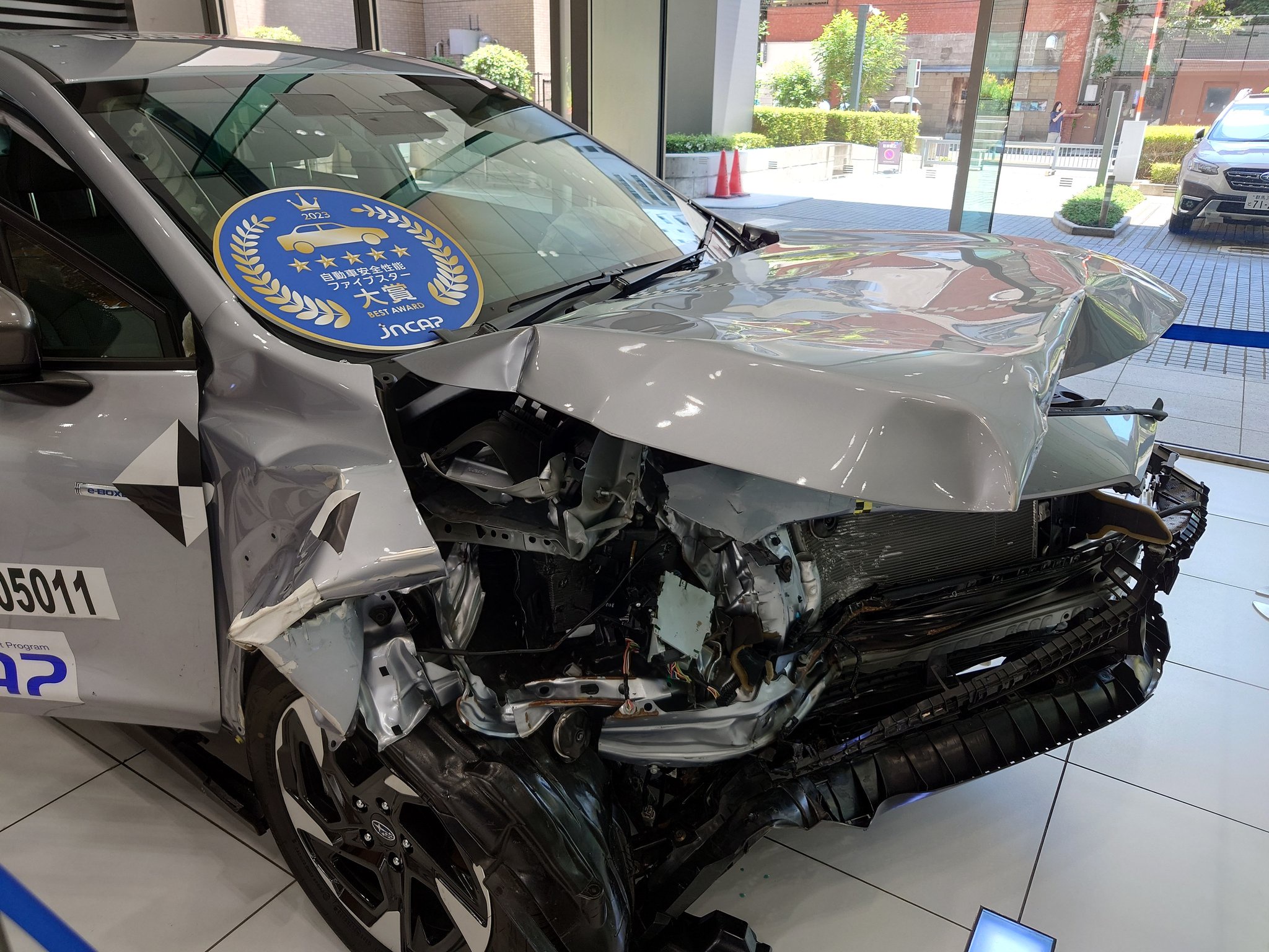 スバル凄い。これだけぶつけてフロントガラスにヒビも入らないしドアも普通に開く。 pic.twitter.com/f2cxtSy9kT