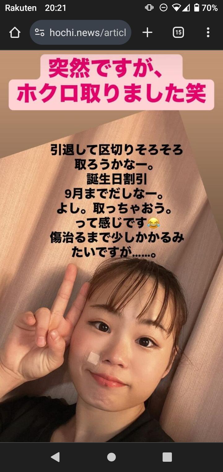 【画像】元体操宮川紗江「ホクロ取りました笑」パシャ