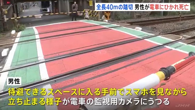 横浜市の長さ約40メートルの踏切で20代男性が電車にひかれ死亡 監視カメラに待避スペース手前でスマホ見て立ち止まる姿 警察は待避スペース間違えたとみて調査