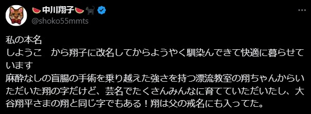 私の本名 しようこ から翔子に改名してからようやく馴染んできて快適に暮らせています