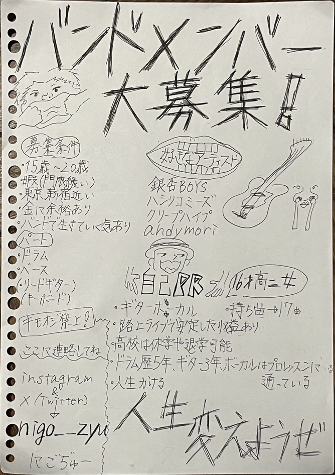 【画像】16歳JKのバンドメンバー募集、ガチすぎるwwwww