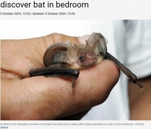 コワ~…就寝中の寝室にコウモリが侵入し、子供が狂犬病で死亡「咬傷がなかった」と両親(カナダ)