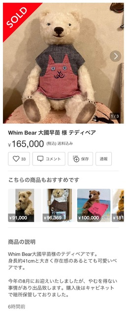 ついこないだものすごいしつこくオーダーされてやっと仕上げた大きな熊をさっさとオークションに出して売った人がいます。