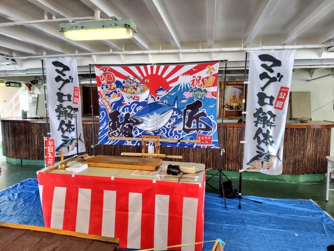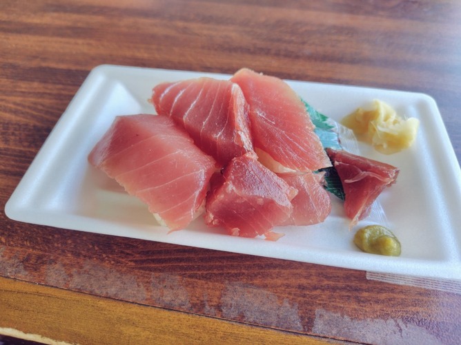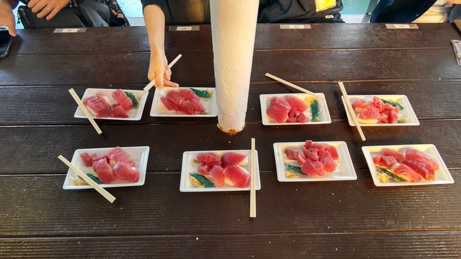 解体ショーも終わり、みーむーの目の前で大試食会が始まりました🍣本島に食べるのが惜しい…。 #かみかむ大航海@