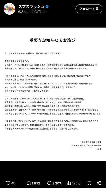 巨乳アイドルさん(18)、生誕祭の翌日に即落ち2コマ漫画みたいな展開に… 2024/10/19 キニ速 1:名無し :2024/10/19(土) 09:39:35.955ID:AZKyLY1w6 かなしい 12:名無し :2024/10/19(土) 09:45:02.261ID:oIcdkfqMr 生誕祭の翌日に解雇ってガチでヤバいよな… 31:名無し :2024/10/19(土) 09:50:36.766ID:tVPQZ6deX 運営もやばすぎて草 続きを読む Source: キニ速