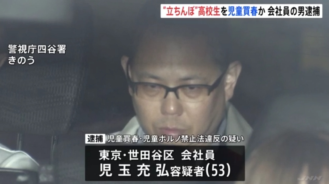 東京都新宿区の区立大久保公園周辺で、客待ちをしていた女子高校生(16)に現金を渡してわいせつな行為をしたとして、警視庁保安課は18日までに、児童買春・ポルノ禁止法違反容疑で、会社員児玉充弘容疑者(53)=世田谷区赤堤=を逮捕した。